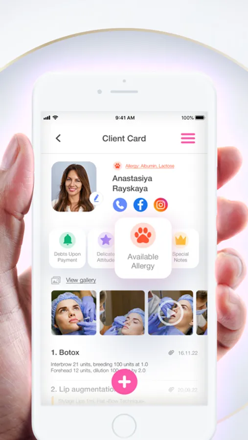 «Client records»—personal and medical information on each of your patients, with photos and videos.