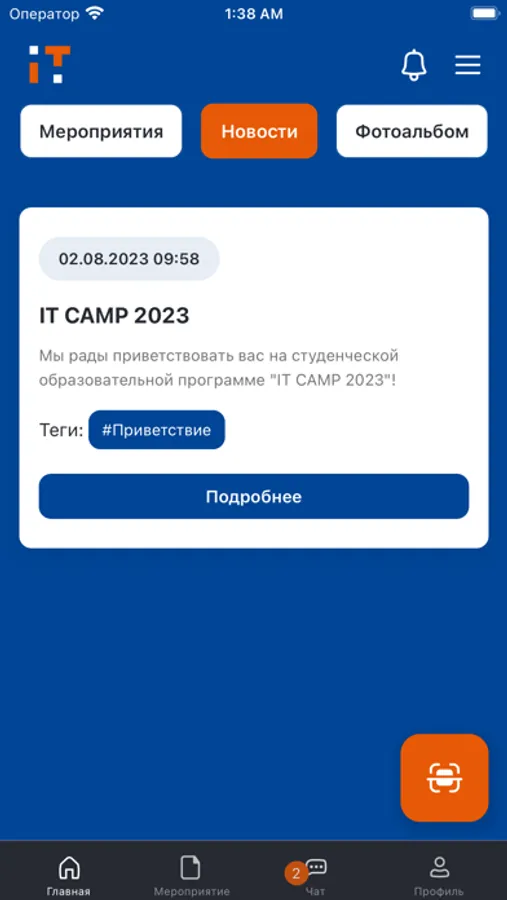 Информационный портал Студенческой образовательной программы IT CAMP 2023. Позволяет ознакомиться с актуальным расписанием программы, быть в курсе всех новостей, получать оперативную информацию и необходимые материалы по образовательным трекам и сквозному кейсу, просматривать фотографии, а также обсуждать актуальные темы с другими участниками.