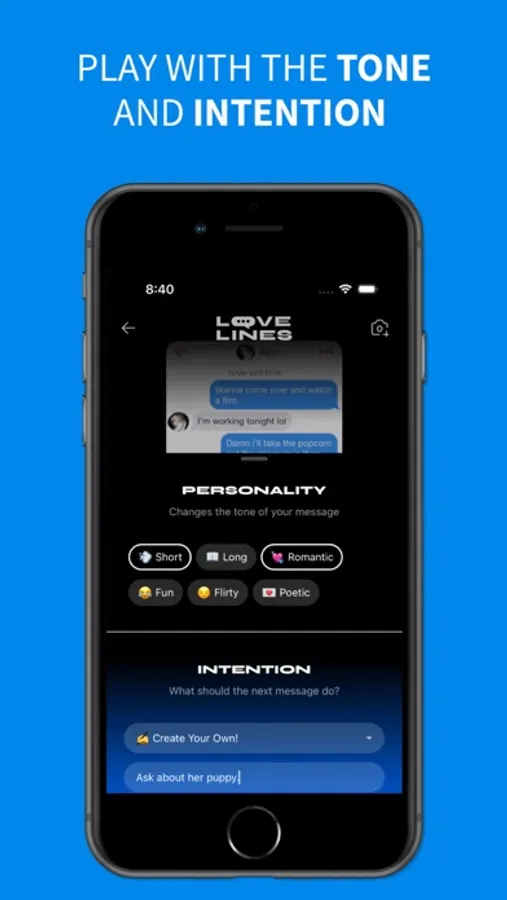 Struggling to find the right words to impress your date? Our AI-powered chatbot has got you covered! Just upload a screenshot of your conversation and our intelligent algorithm analyzes your messages and suggests personalized responses that will help you strike up interesting and engaging conversations. Whether you're looking for flirty banter or deep conversations, our app has you covered. Download now and start impressing your date with ease!
