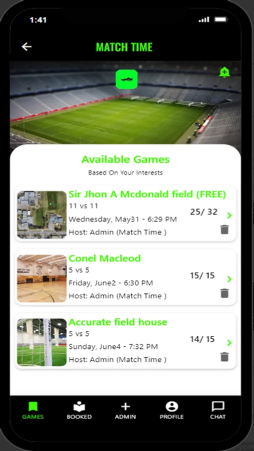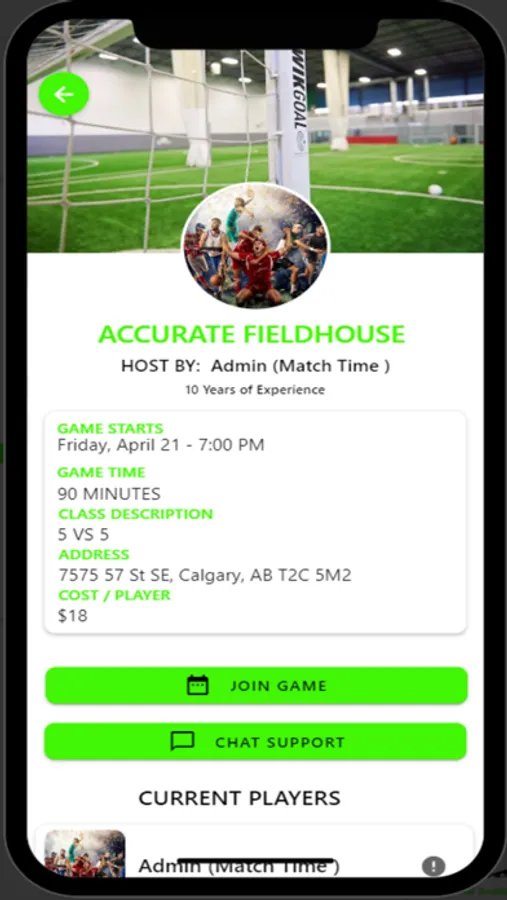 If you find yourself lacking enough players for a sports game, or if your friends are too busy or unable to commit to different schedules, MATCH TIME has a solution for you. Our platform creates various locations and times for games, and all users can fill the available spots to play. Not only will you get to enjoy a great sports game, but you'll also have the opportunity to meet new people!