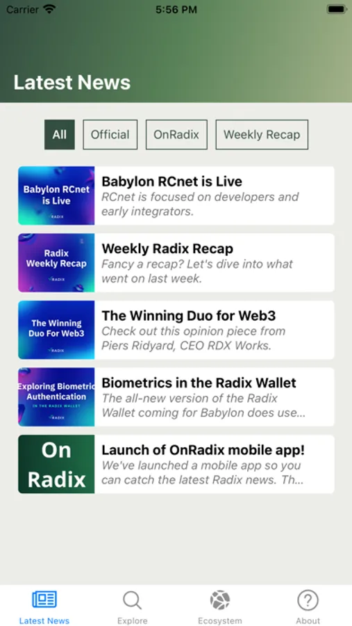 Your companion app for Radix - get quick access to the latest Radix Ecosystem news and see some basic information such as your XRD balance.