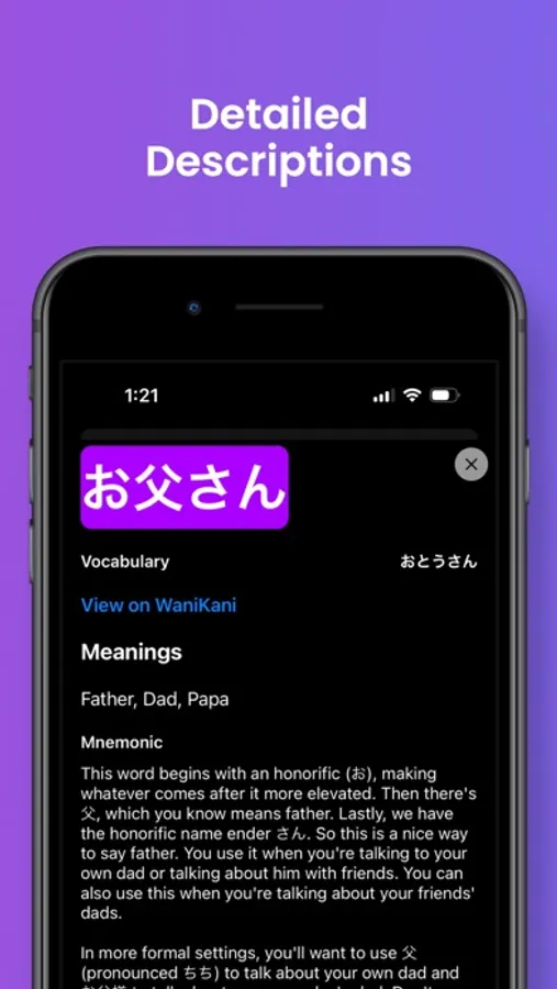 Introducing WK Stats for WaniKani users - your simple solution for tracking your Japanese language progress through WaniKani! You can easily access detailed statistics for your WaniKani account, including review accuracy data and level-specific information. View all kanji, radicals, and vocabulary by level, making it easy to track your progress and identify areas where you need to improve. You can also search for specific kanji, radicals, and vocabulary, allowing you to focus on the items that you need to study the most.