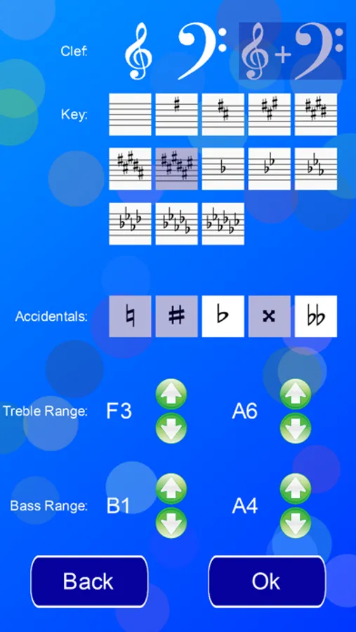 One important feature you won't find in other similar apps is that our app supports all 11 (+2 identical F# and Gb) keys, which is crucial for advanced music learners. All keys are available: C, G, D, A, E, B, F#, F, Bb, Eb, Ab, Db, Gb. In other words, it is even able to detect if you get the semitone (sharp or flat) right. Accidentals are also supported (Double-sharp, double-flat, natural).