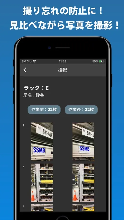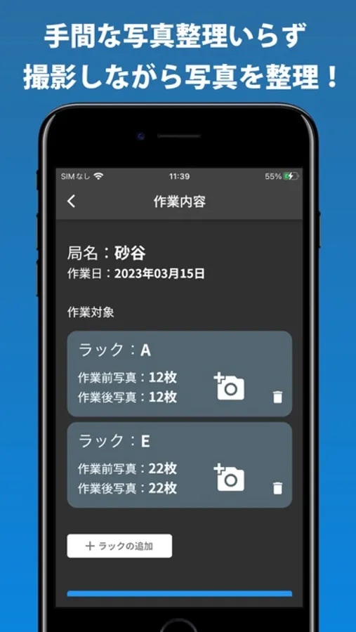 後で、どのラックの写真だったか?作業中、作業後?など整理する必要はありません。