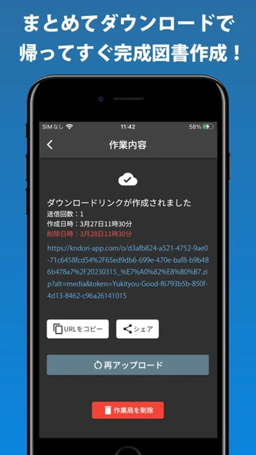 *ダウンロードURLはしっかりと管理してください。外部に漏れると、データをダウンロードすることが可能です。