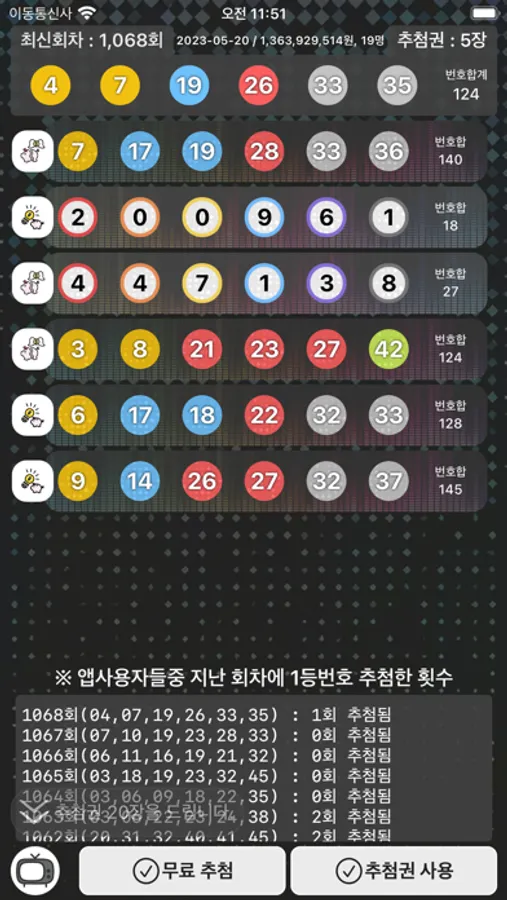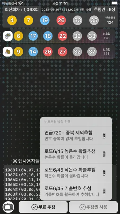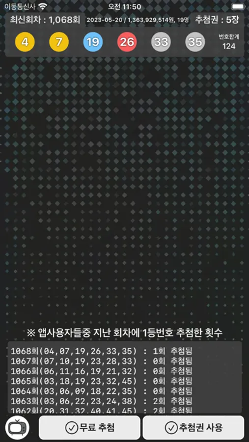 - (기본 무료 추첨은 랜덤으로 번호를 추출합니다.)