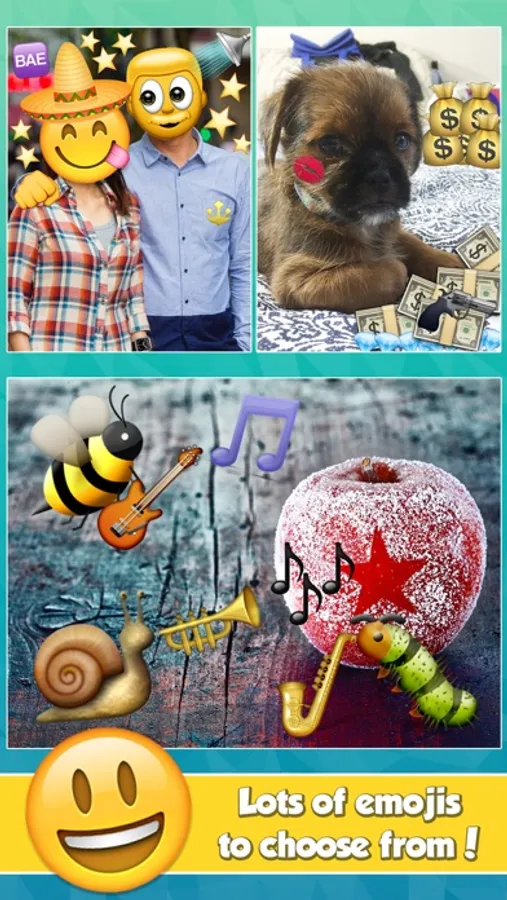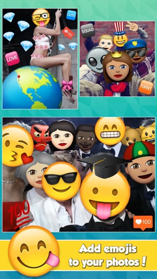 • Choose from over 3200+ emoji images to add to your photos