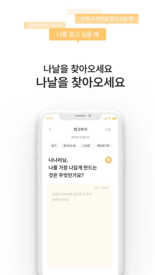 나날 Nanal은 기록에 대한 '돌아봄'을 통해, 더 나은 '나'로 성장할 수 있다는 걸 보여주고 싶어요. 그것을 위해 '체계적이고 섬세한' 서비스로 만들었답니다.