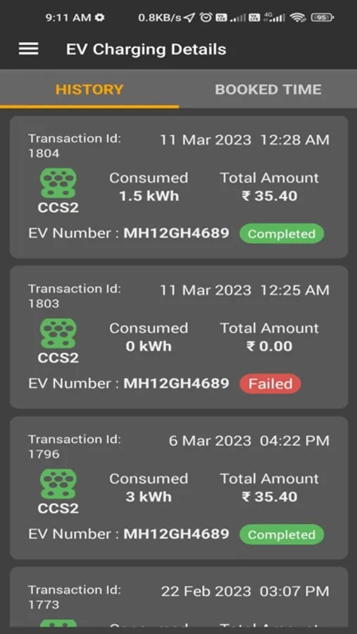 ● Charging History - Check Charging History of all successful, failed Charging sessions.
