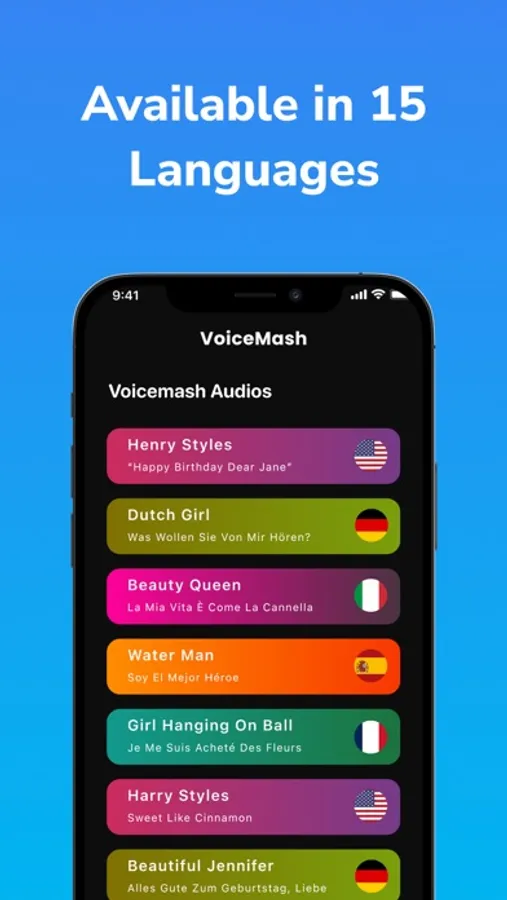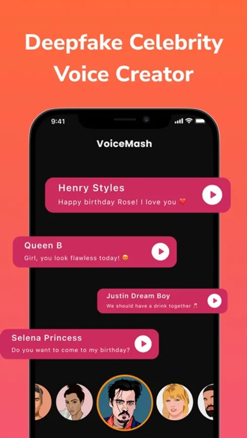 VoiceMash - AI Voice Generator is an application that uses artificial intelligence to mimic the voices of over 40 celebrities. Simply enter the first and last name of a friend or loved one, and generate a personalized parody message using deep fake technology.