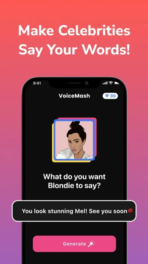 Are you ready for Queen B to celebrate your birthday or for Selena G to invite you backstage? With VoiceMash - AI Voice Generator, all the celebrities will say whatever you write!