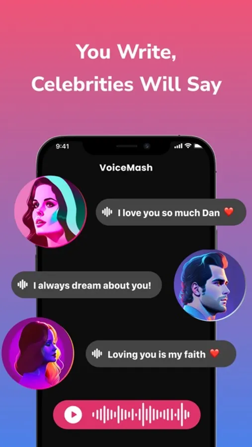 It sounds incredible, right? Now, it's not impossible to have a voice recording from your favorite celebrity. Creating a deepfake audio has never been this easy! With VoiceMash - AI Voice Generator, you can easily mimic any celebrity's voice.