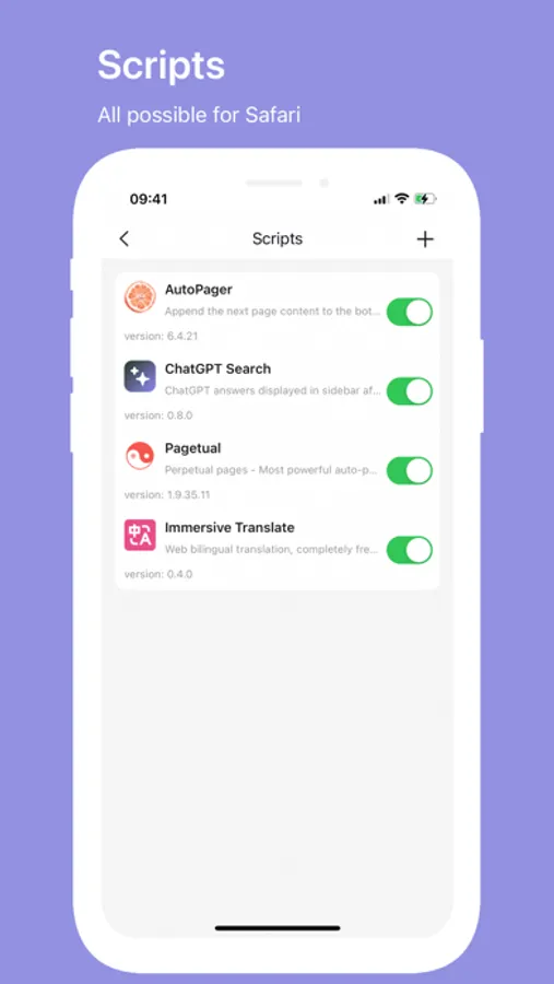 One of the highlights of Addons is its support for Greasemonkey/Tampermonkey scripts. With this feature, you can add custom scripts to your Safari to achieve more functionality, such as automatic pagination, harassment blocking, automatic expansion, webpage translation, and more. This feature is very powerful and can give your Safari unlimited possibilities.