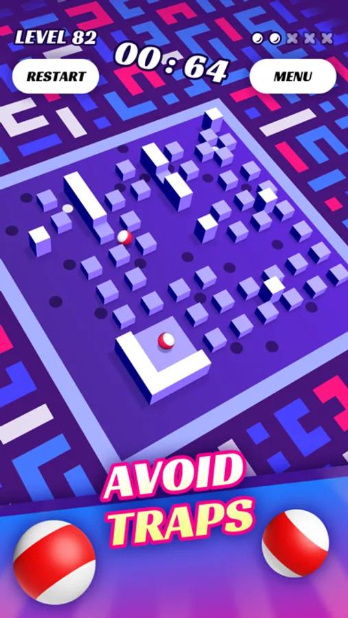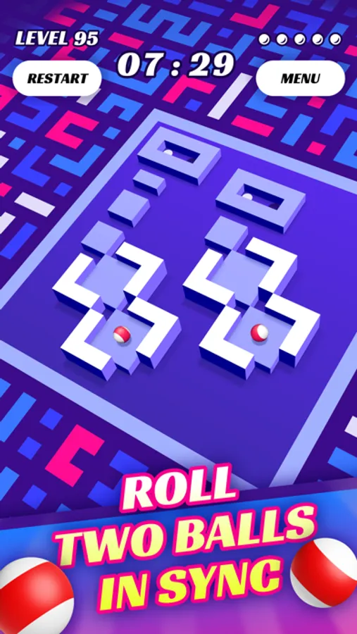 Control two balls in sync. Guide them towards their goals without hitting too many traps or falling off the path. Super fun & challenging.