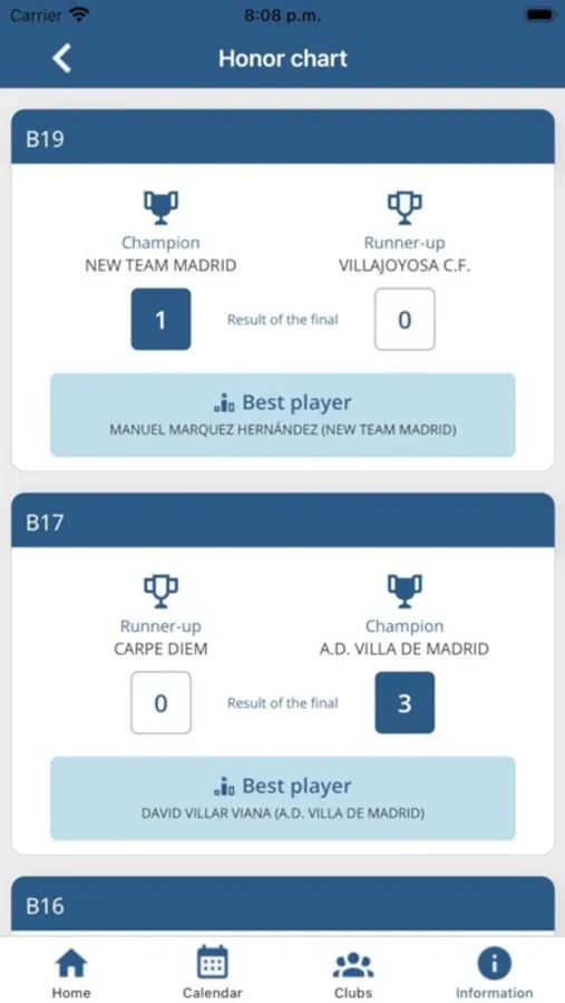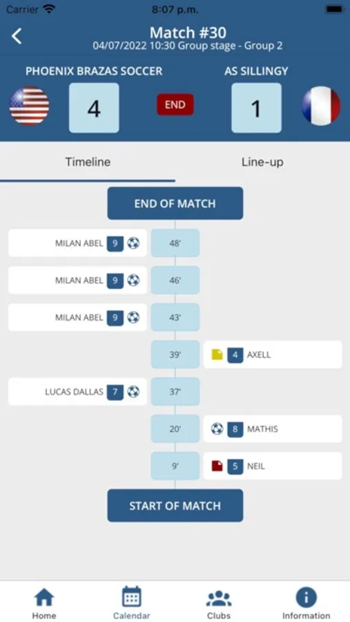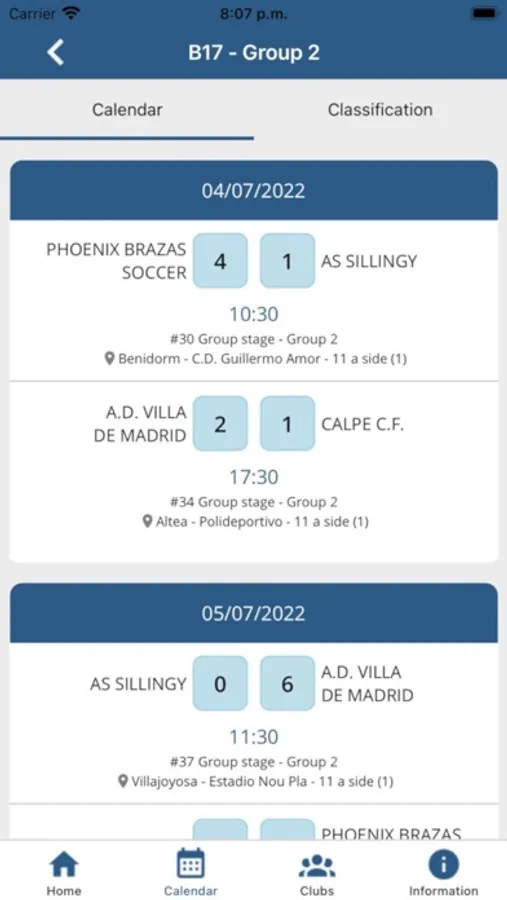 One minute after the end of each game, you will be able to access the results and classifications from your phone.
