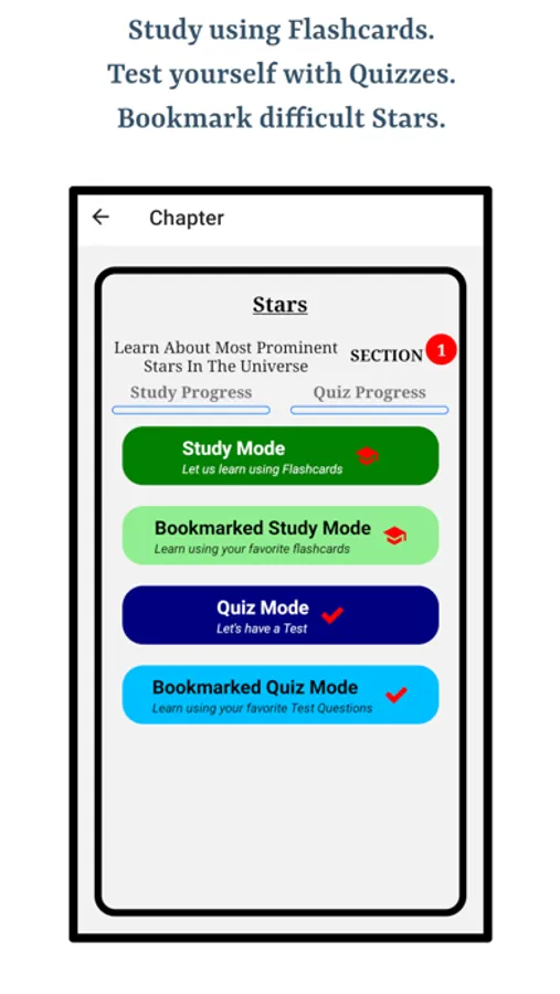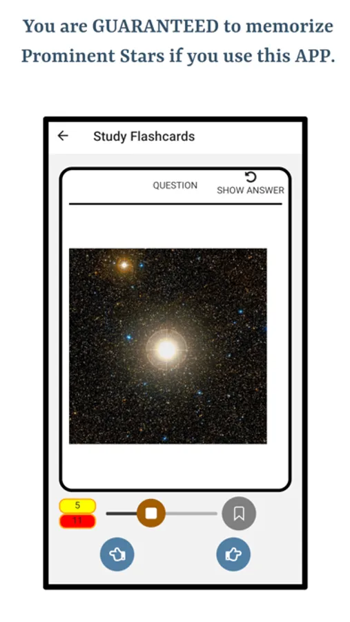 This app is a great resource to memorize Most Prominent Stars. The app is engineered to make users perfect identifying most prominent stars by studying for a very short amount of time. Audio functionality and bookmarking is available throughout the app on chapter, section, study mode and quiz modes.
