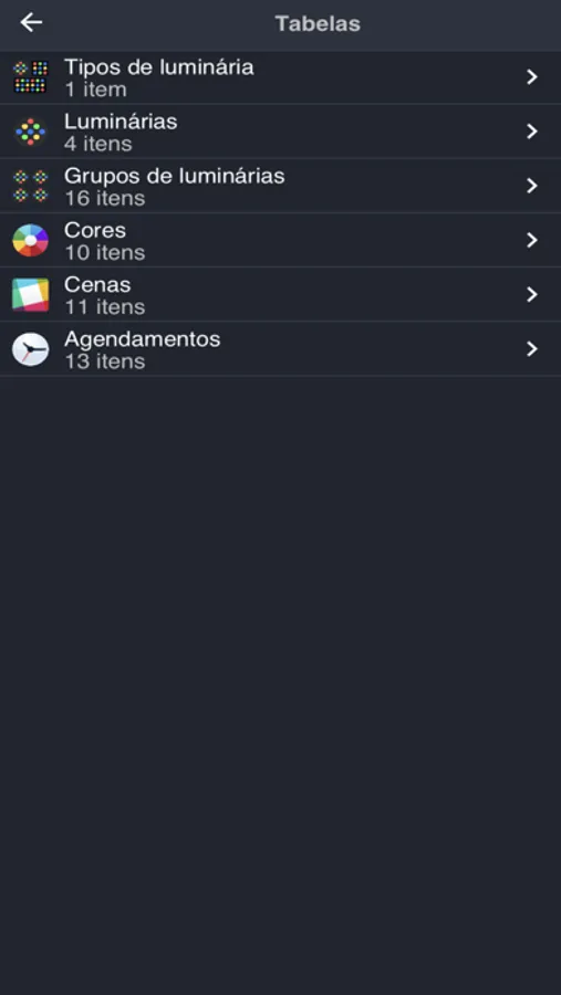 Além de acionar as cenas, será possível editar as tabelas de cores, aparelhos, grupos, cenas, agendamentos e configurar todos os parâmetros do Lumikit ARQ 2.