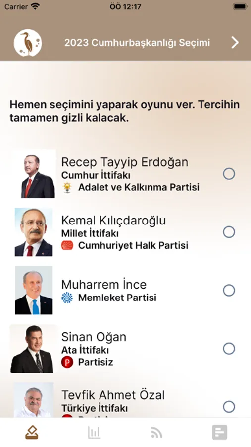 OyVer, kullanıcılarının tamamen gizli olarak verdiği oylarla seçimlerin anlık olarak nabzını tutan ve güncel durumu çeşitli metriklerle yine kullanıcılarına sunan bir uygulamadır.