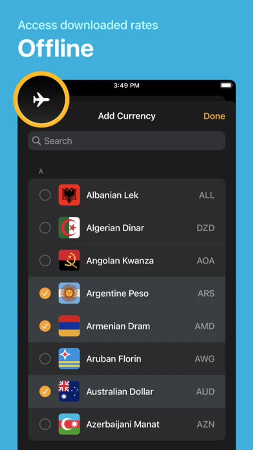 - Works Offline. Downloaded rates are stored on your device for future use.