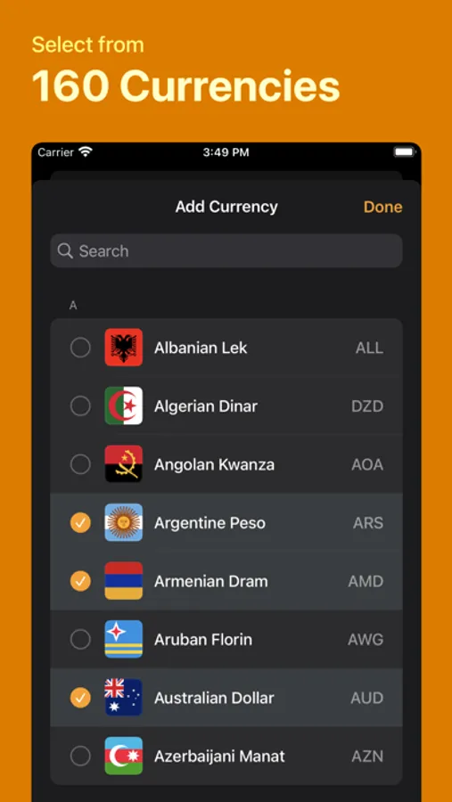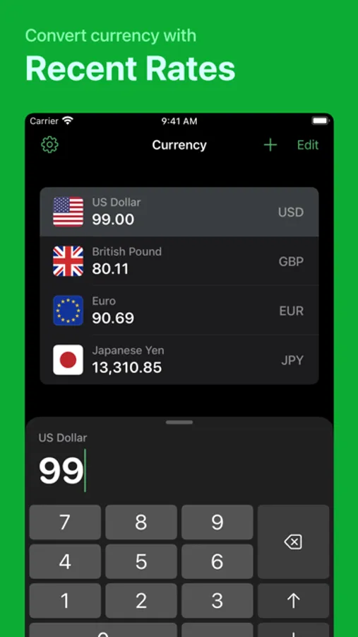 - Synced Devices. Your currency selection syncs between devices via iCloud;