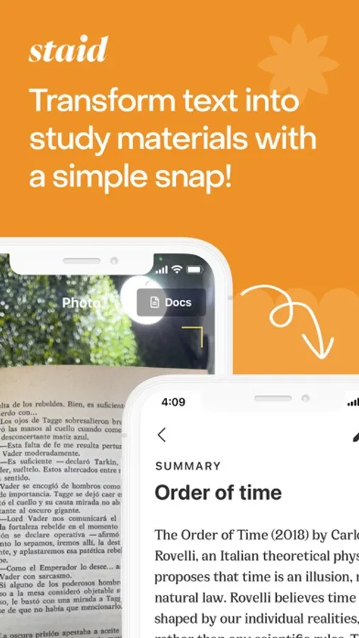 • Staid opens right to the Camera — just snap a photo of your textbook, notes, or documents.