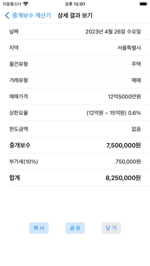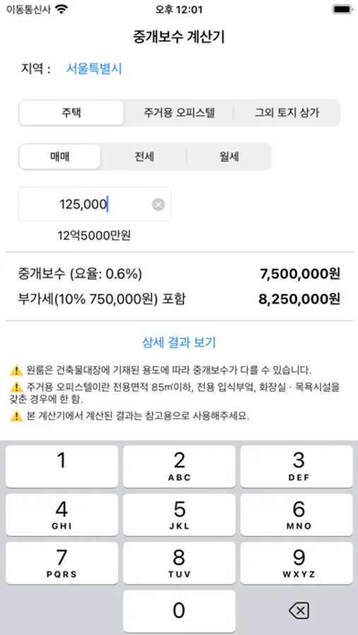매매, 전세, 월세 각각 부동산 중개보수를 계산합니다.