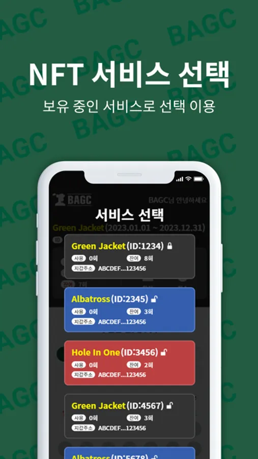 BAGC NFT 보유자분들을 위한 특별 골프 예약 앱 입니다.