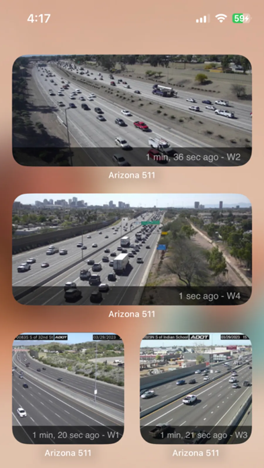 Add up to (4) four traffic camera widgets to your home screen and stay up-to-date with the latest traffic and road conditions.