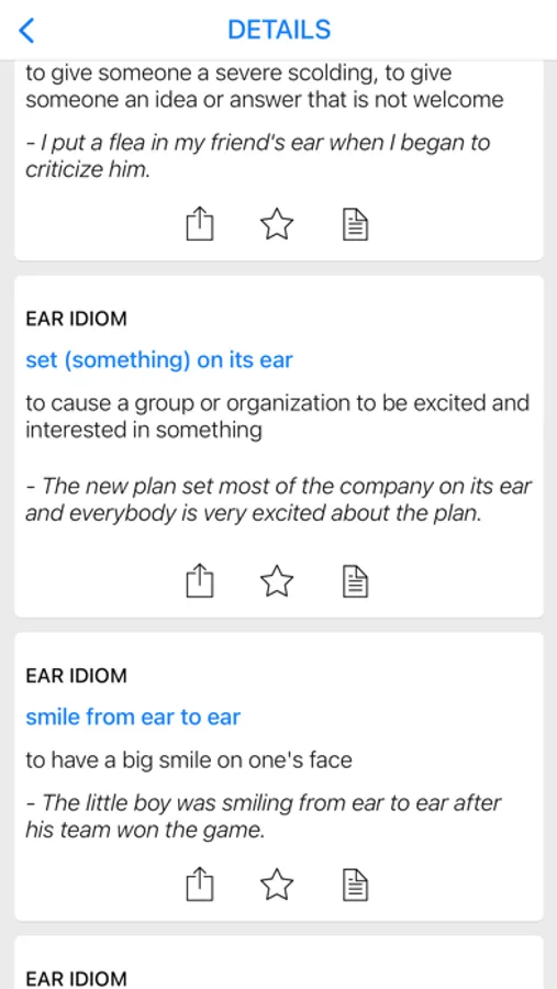 You can save, take notes and share with friends idioms you like. The app is suitable for English language learners, as well as anyone looking to improve their understanding and use of idiomatic expressions in everyday communication.