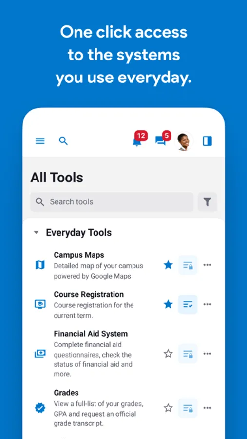 - Access Blackboard, MAP, student services, Email and other everyday tools