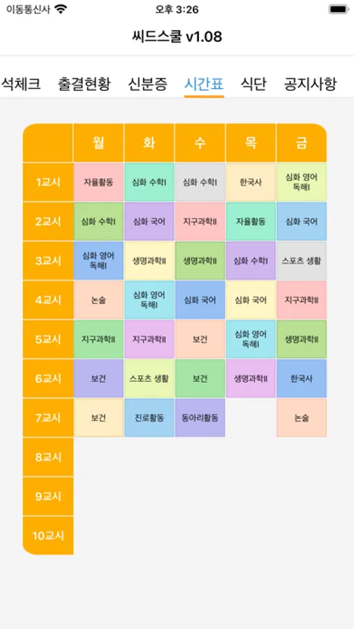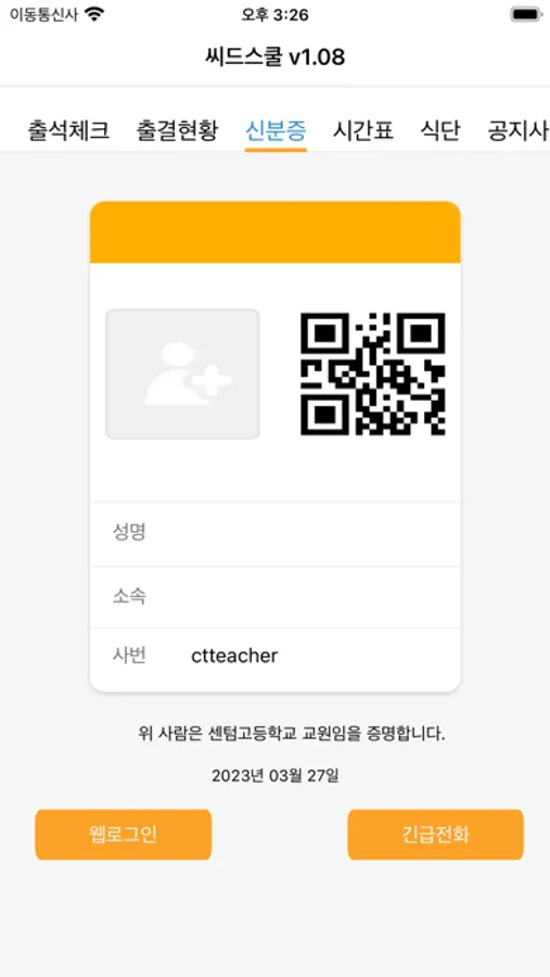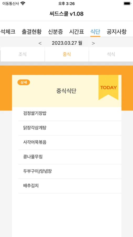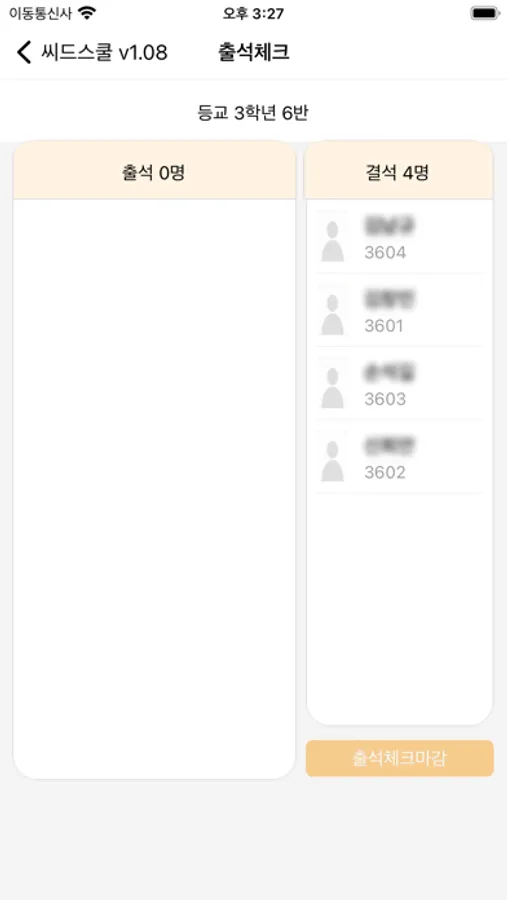 * 등교관리 ( 학생들의 등교를 체크합니다.)