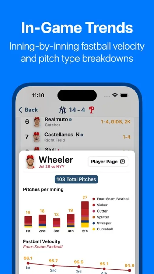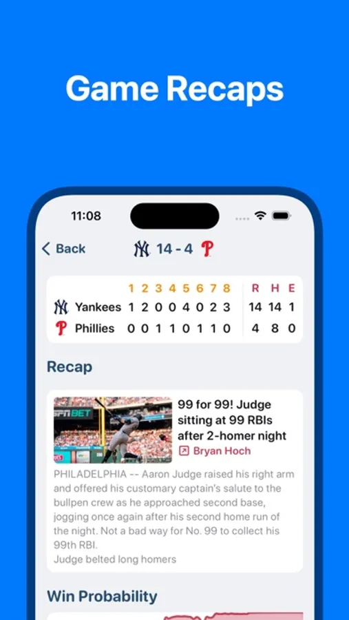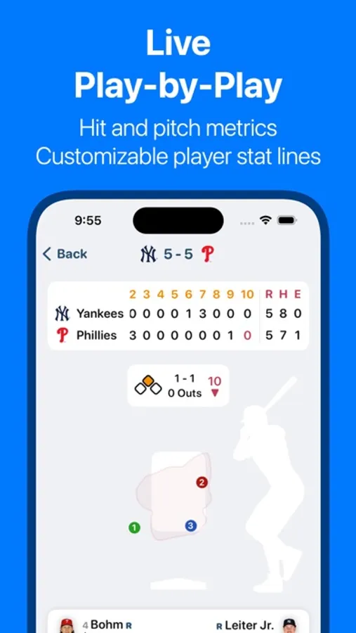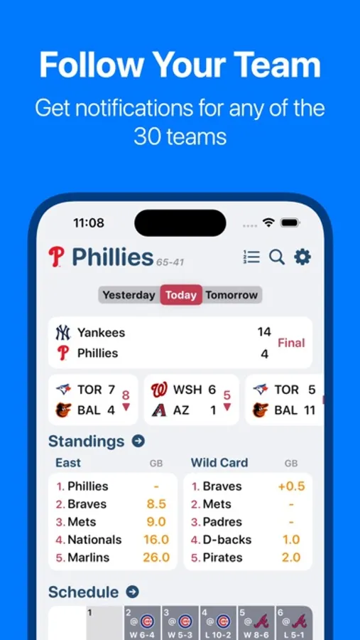 Follow your favorite MLB team with live play-by-play, standings, schedules, sortable stats and much more. Plus, follow the game on your Lock Screen with Live Activities and Notifications.