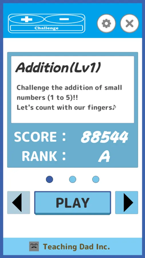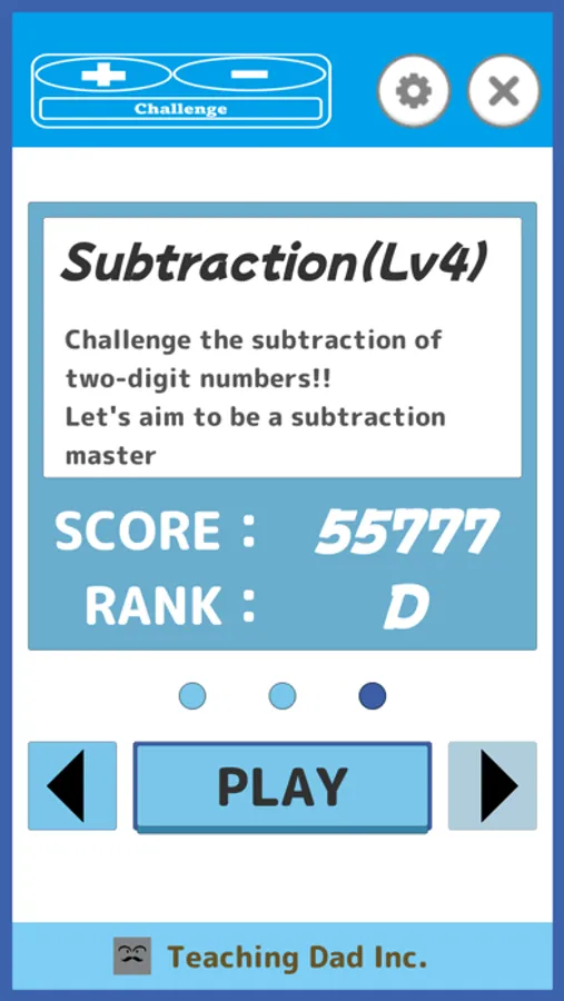 This app is an educational app that allows you to practice addition and subtraction. A wide range of problems from easy to difficult are available, so you can learn at your own level. There are also features for accuracy rate, time, and score, where the score is calculated based on the time and the number of correct answers. By displaying a rank (from G to S) based on the score, it can increase your motivation to learn. If you want to improve your calculation skills, please try this app!