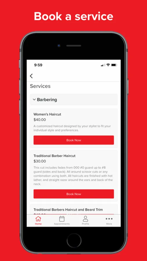 • Book traditional barber haircuts and shaves with your favorite service provider