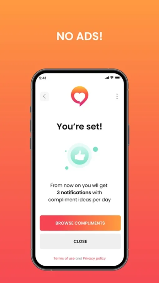 Whether it's your anniversary, Valentine's Day, or your partner's birthday, Compliments has got you covered. With a wide variety of compliment options, you can choose the perfect words to express your love and admiration. The app will help you come up with creative and unique compliments that will make your partner feel special and loved. Browse through hundred of compliment ideas anytime.