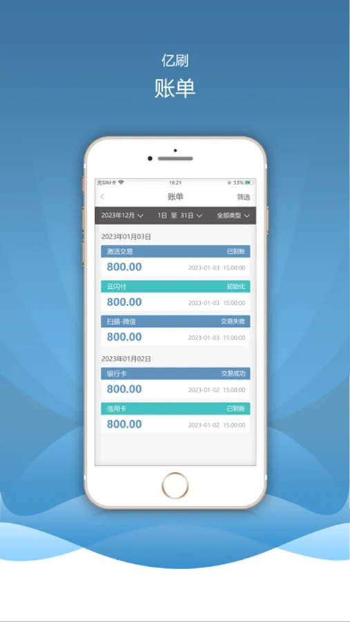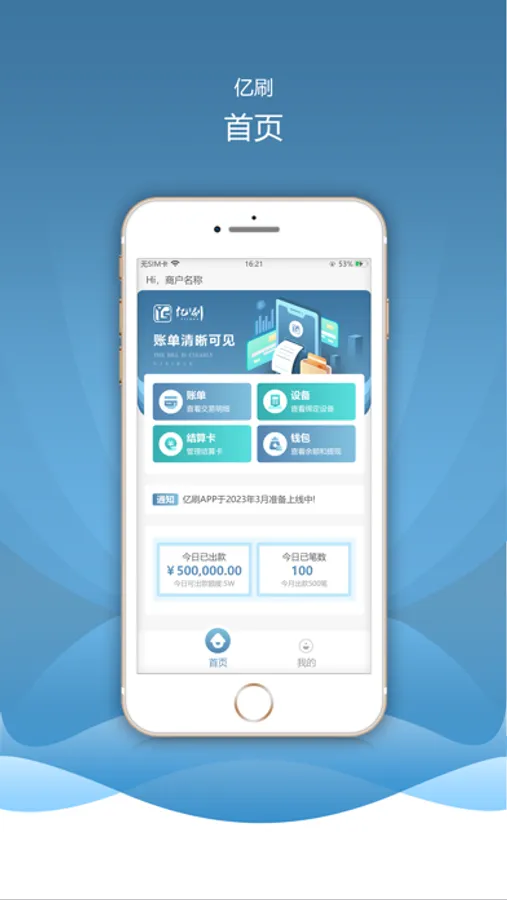 亿刷是一款为中小型商户设计的便携式收款、金额查账APP;