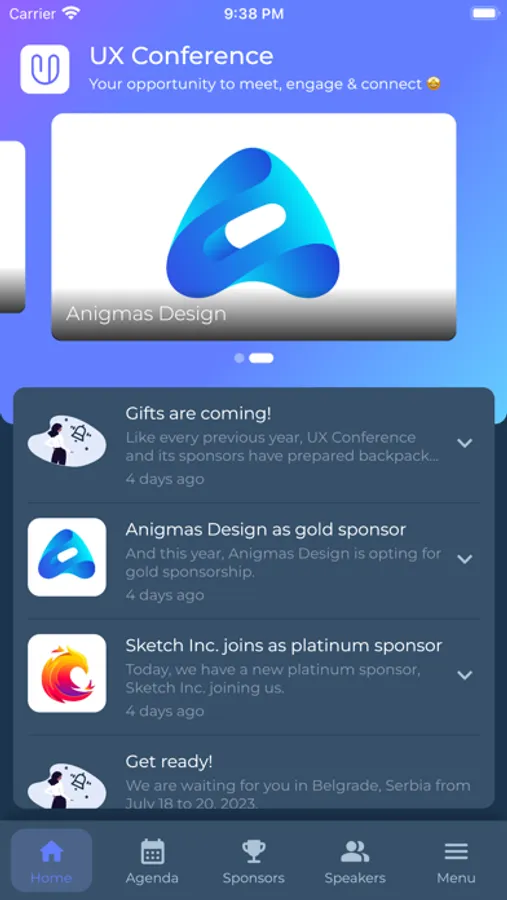 The on-site app for event or conference visitors. Confi makes managing change, keeping visitors informed and promoting sponsors easy and fast. The ability to change themes and fonts makes sure Confi always matches your visual identity.