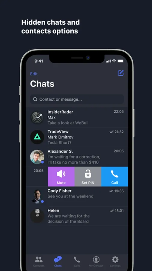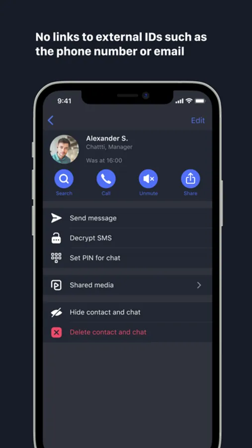 Chattti communication platform - secure communication, document sharing and contact exchange without being tied to a phone number or mail. Stay anonymous and communicate with those you trust without the threat of leakage of your personal information and personal data with storage and encryption on your device.