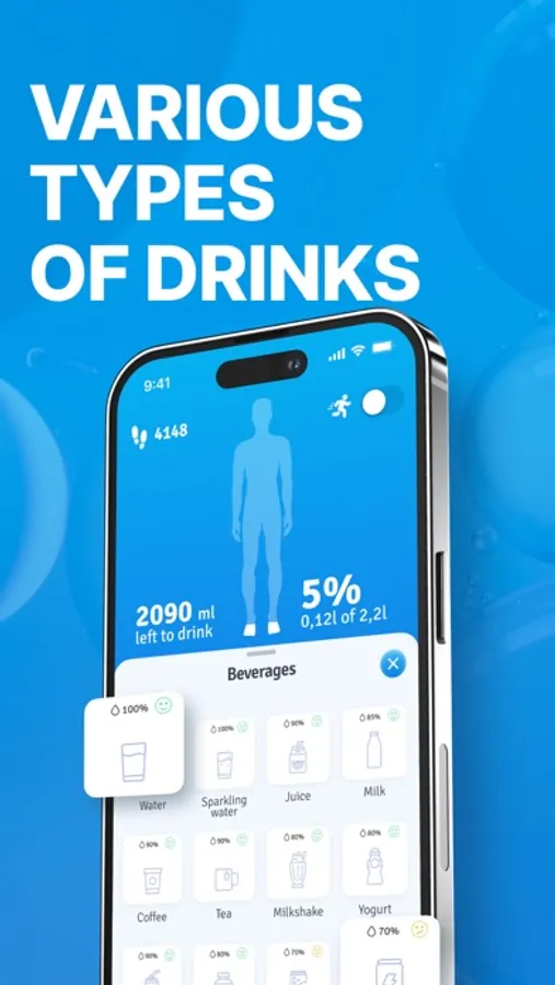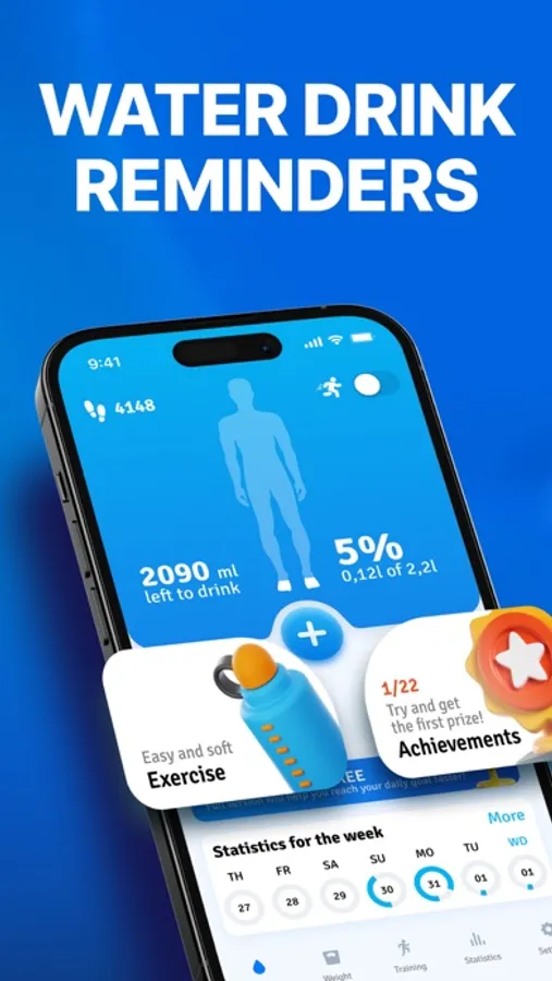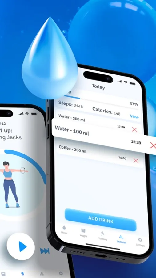 The human body consists of 60% water. It is very important to maintain the water balance of your body. The application will help you determine the daily fluid intake and help you track the achievement of your goal!