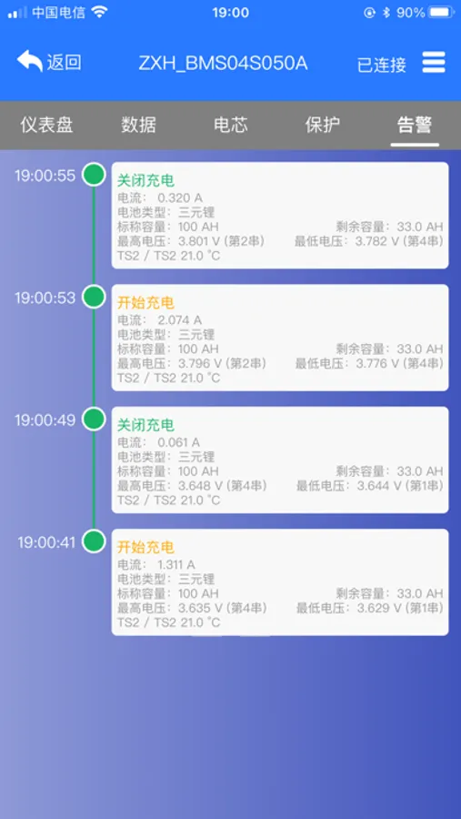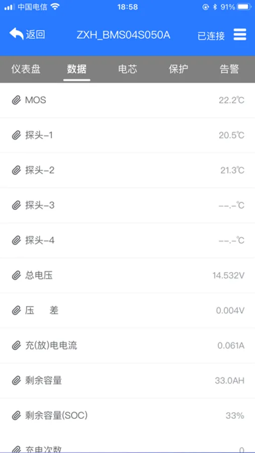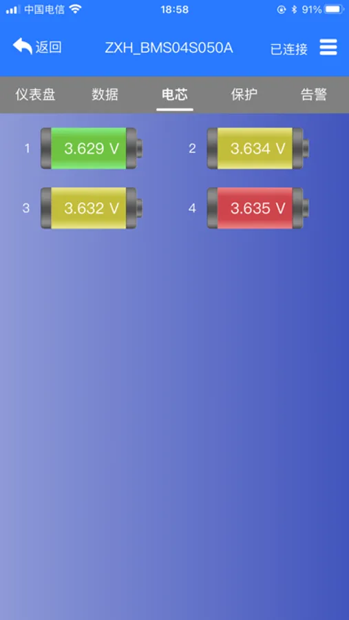 一款专门为电池保护板开发的APP,主要用来读取锂电池各串电池电压,充放电电流、保护状态,以及电池保护板的参数设置功能,让用户能够清晰的了解电池的状态,保障电池的使用安全。通过加入仪表板、电量、温度显示等功能,让用户更好的了解状态。