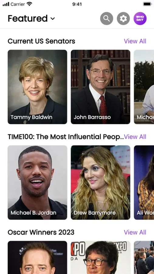 Discover the people you care about the most with WhoDat. Identify over 100,000 public figures in seconds just by using their photo. Search through 10,000,000 profiles by name. WhoDat makes it easier than ever to find creators and all their content. Want to have your own profile? Create one and share the link in your social media bios.