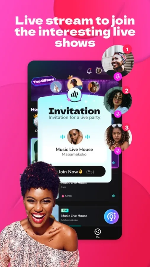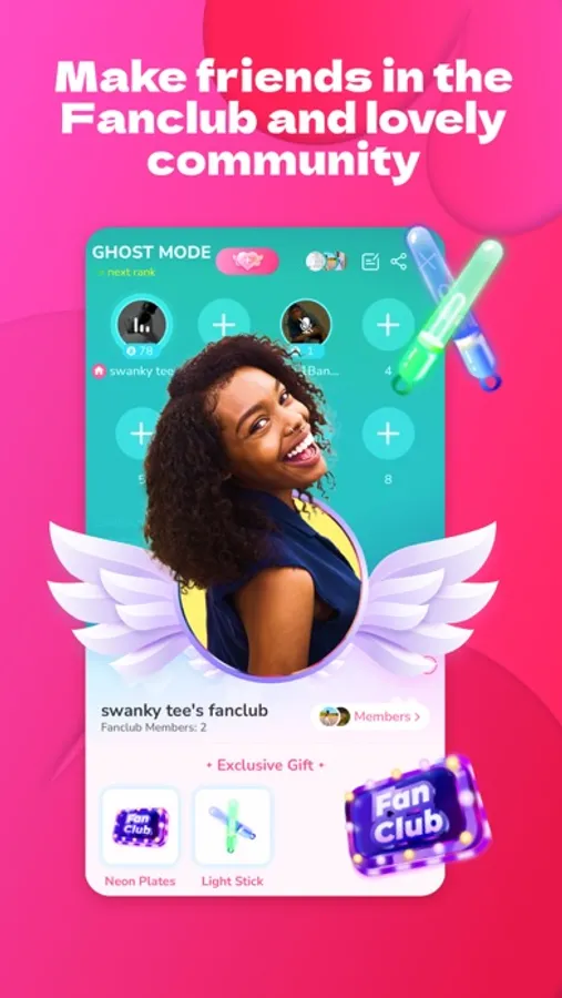 Audio live chats with friends no matter where they are, broadcast your favourite music inside the room, and join fanclubs of your favourite creators. Let's get the party started.