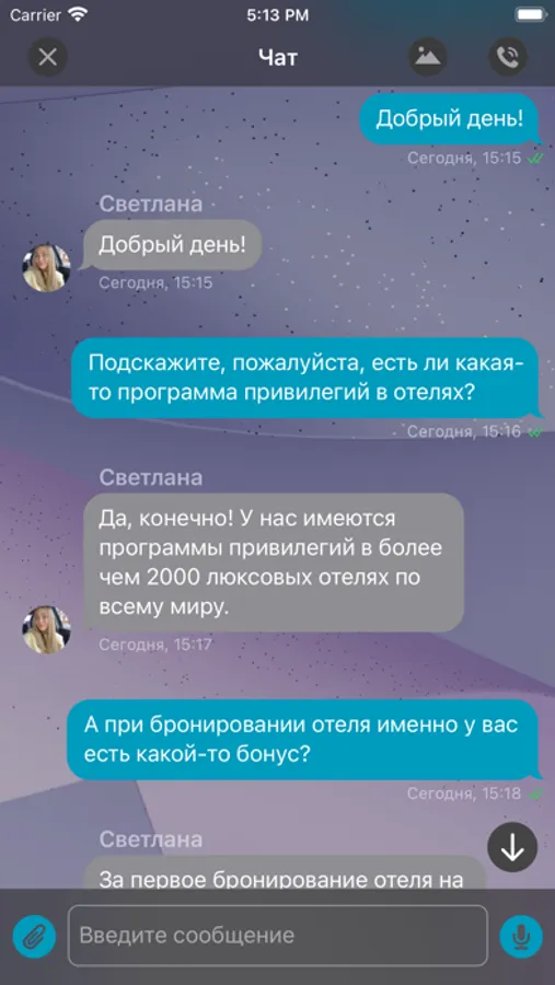 · Оперативно решить повседневные задачи любой сложности, через чат с Вашим консьержем (например, подобрать авиабилеты и экскурсии, забронировать отель с привилегиями по всему миру, заказать трансфер, оформить визу, подобрать ресторан и многое другое)