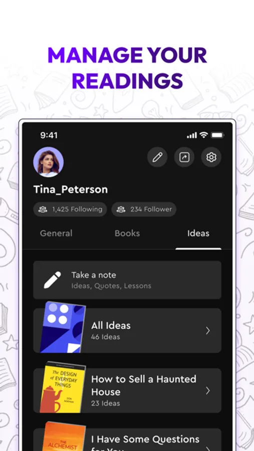 Bookshelf: Track and manage your readings with the Oter bookshelf.