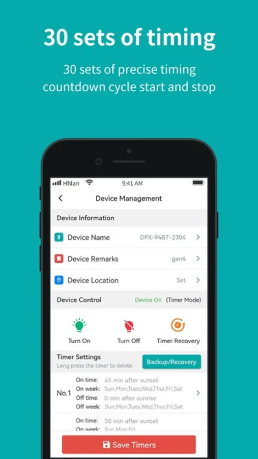 Bluetooth timer switch management software, for management of Bluetooth timer switch on, off, timer settings and other functions.