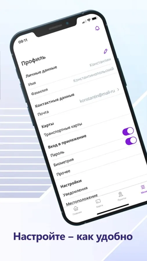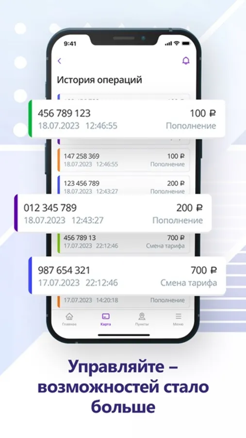- Возможность сохранения в избранное нескольких номеров транспортных карт.