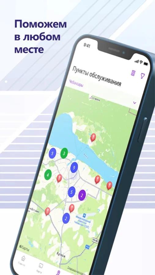 - Поиск ближайшего пункта обслуживания с учетом заданных фильтров.