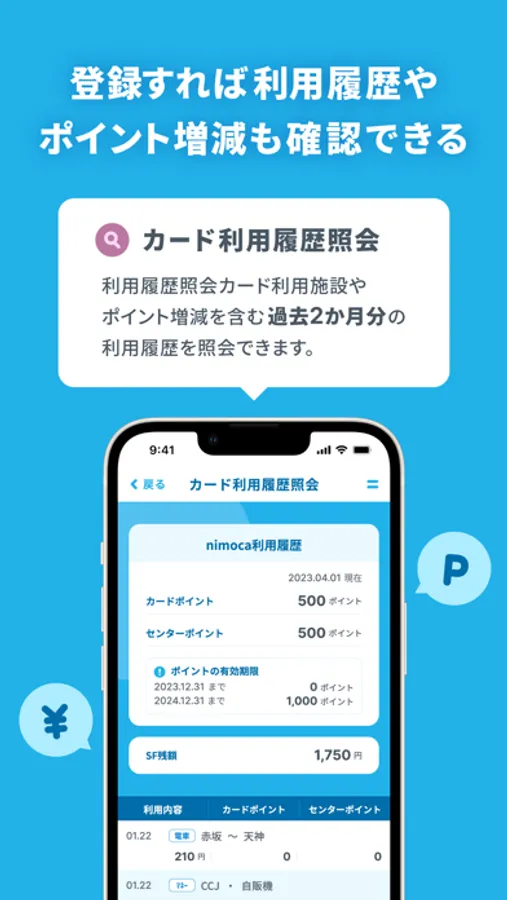 さらに利用登録申請を行っていただくと、カード利用施設やポイント増減を含む過去2ヵ月分の利用履歴も照会いただけます。
