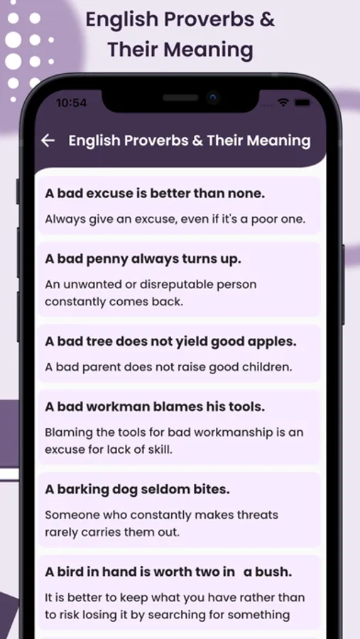 If you're looking for a comprehensive guide to English idioms and phrases, this app is just what you need! With a vast collection of common idioms and phrases, this app will help you to improve your English language skills and speak like a native.