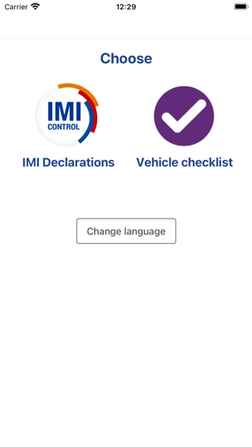 App lists EU IMI Declarations and UK Border Force Vehicle Checklist for truckers
